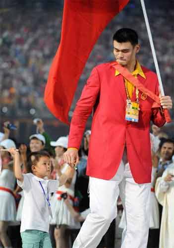 在北京奥运开幕当天,中国代表团浩浩荡荡走进国家体育场时,旗手姚明的身旁走着另外一位小“旗手”, 就是九岁的小林浩,他的头上,还有地震带来的伤痕。在 2米 26的巨人面前,林浩显得更小了,他双手分别举着鲜艳的五星红旗和奥林匹克五环旗,交叉挥舞。虽然走在姚明身边,但一点都不怯场。