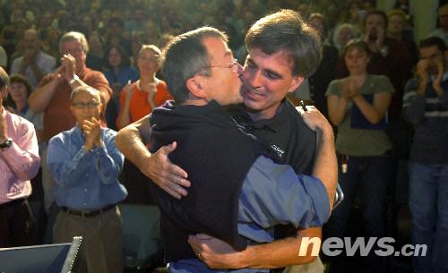 美国卡内基—梅隆大学计算机科学教授兰迪·保施7月25日在家中去世,年仅47岁。2006年9月,兰迪·波许被诊断患有胰腺癌。 尽管进行了手术和化疗,他还是在2007年8月被告知癌细胞已经转移至肝臟及脾脏,至多可以再 生活 6个月。此后不久的2007年9月18日,他走上讲台,上了自己生命中的最后一堂课。演讲中,身患绝症的保施鼓励听众珍惜时间、追寻梦想。这一鼓舞人心的演讲让他成为《时代》杂志世界最有影响的100人之一。在完成他的动人演讲“最后一课”后接受他以前在布朗大学的导师安迪的亲吻。 (图/文:新华社/路透 )